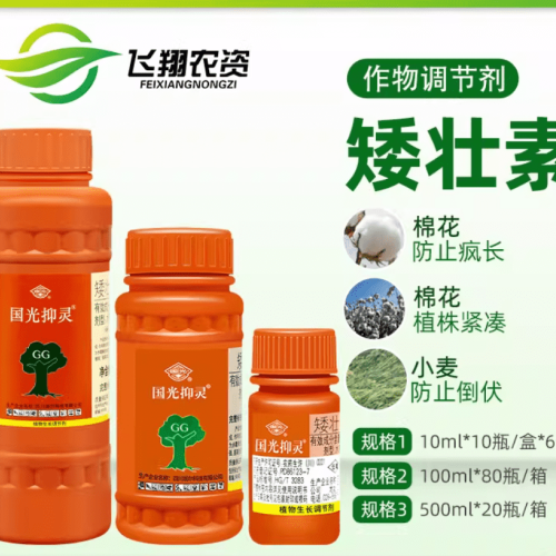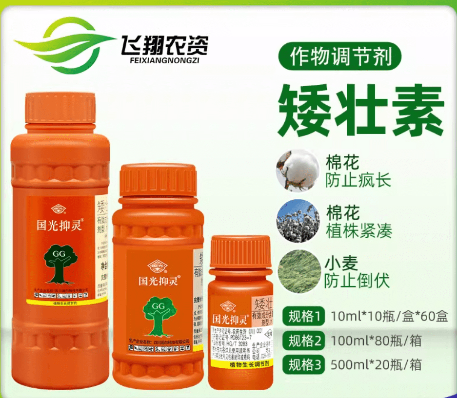 矮壮素可抑制植株伸长,使茎秆粗壮、叶色浓绿,防徒长、防倒伏,多用于小麦、玉米、棉花、花卉,提高抗逆性与结实率,作用温和,适合苗期与旺长期控旺使用。
